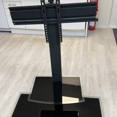 Runko on takorautaa, sekä kahdessa tasossa olevat levyt tummaa erikoislasia. Todella tukeva, toiminut meillä 50-55 tuumaisen tv:n tasona, mutta isompikin mahtuu.