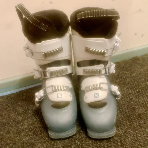 Pinnalta kuluneet mutta ehjät ja sisältä siistit lasten monot Salomon. Koko 23, sisämitta n. 23 cm, ulkomitta 276. Nouto Pöykkölästä.