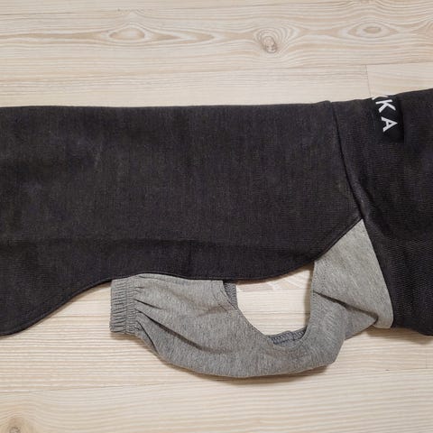 Muutaman kerran kokeiltu PAIKKA Recovery Overall välipuku koko 35 cm. Oli liian suuri omalle bostoninterrierille.