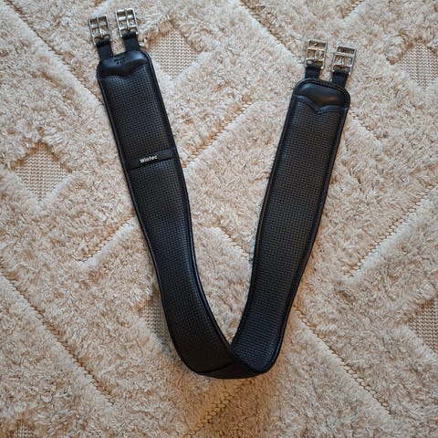 Ehjä musta satulavyö, joitakin käytönjälkiä, perussiisti kuitenkin.