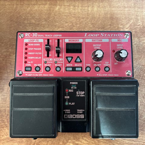 Boss RC-30 Loop Station kitaran looper-pedaali. Kaksiraitainen looper, jossa on sisäänrakennettuja efektejä, tallennusmahdollisuus sekä useita ohjauspainikkeita ja säätimiä looppaamiseen. Soveltuu sähkökitaralle ja muille linjatasoisille soittimille tai mikrofonille, kun käytössä on yhteensopivat liitännät.