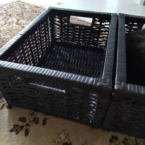 Tarpeettomaksi jääneet säilytyskorit.