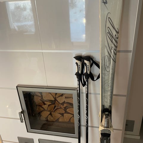 Völkl L77 laskettelusukset siteillä. Sukset on varustettu säädettävillä siteillä, jotka näkyvät kuvissa. Väri on vihertävänharmaa mustilla ja keltaisilla yksityiskohdilla. Suksissa on käytön jälkiä päällypinnassa pohjat suht naarmuttomat. Sauvat exel 125 cm