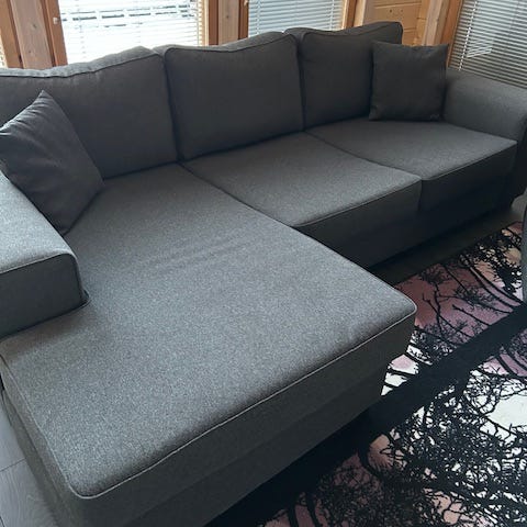 Hyvässä kunnossa oleva sohva kaupan. Parissa tyynyssä kulmat rikki, mutta eivät ole meitä häirinnyt, saa hyvin piiloon. Eläintalous.