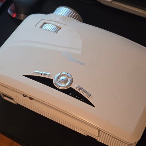 Tästä uuteen kotiin videotykki ja siirrettävä valkokangas. Settiin kuuluu DLP-tekniikaa käyttävä full HD tasoon yltävä tykki, jonka lampussa on käyttötunteja maltillinen 1257 tuntia, mikä tarkoittaa, että tunteja olisi jäljellä vähintään saman verran. Mukana myös kaukosäädin ja kattokiinnike, joka tosin ei ole itsellä ollut ikinä käytössä. Valkokangas on ymmärtääkseni toimistokäyttöön suunniteltu rullattava kangas. Kangas on omaan silmään siisti. Kankaalla on leveyttä noin kaksi metriä, eli siihen saa noin 92 tuuman kuvan. Kankaan saa alemmaksi kuin kuvassa.
