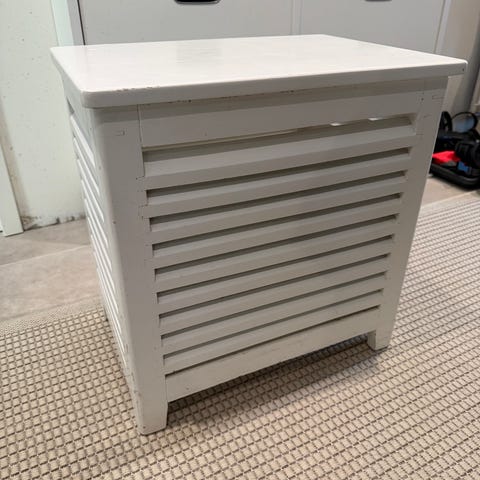 Eteisen ns. puhelinpenkki. Istuinosa, laatikko ja hylly.