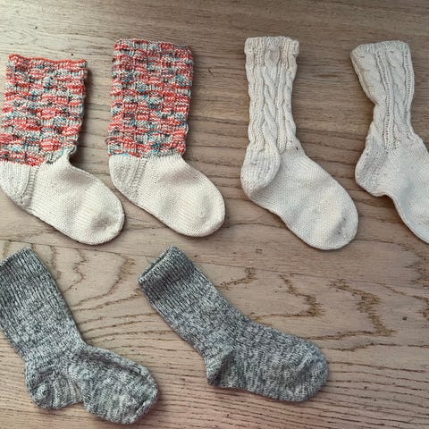 Itsekudotut villasjkat. Kärjen pituus n 16cm, hieman korkeammat joten sopii hyvin esim luistimiin.