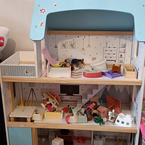 Liukuovet. Mukana huonekalut,astiat,matot,nuket ym.