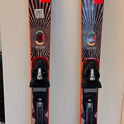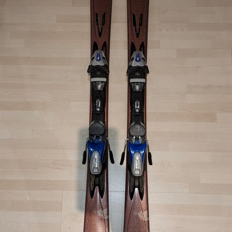 Head Cyber allmountain-sukset, pituus 163 cm. Suksissa on siteet valmiina ja ne soveltuvat rinteeseen monipuoliseen lasketteluun. Väri on pääosin valkoinen. Suksen sivuleikkauksen mitat ja muut tekniset tiedot näkyvät kuvassa suksen kyljessä.