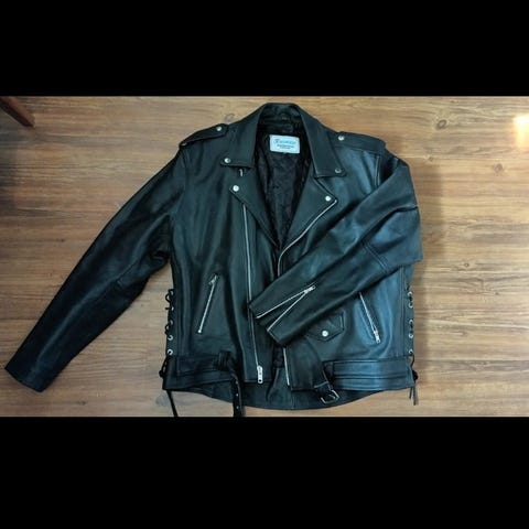 GK miesten nahkatakki, koko XXL. Väri musta. Materiaalina nahka. Takissa kaulus ja etutaskuja. Soveltuu ulkokäyttöön miesten päällystakkina.
