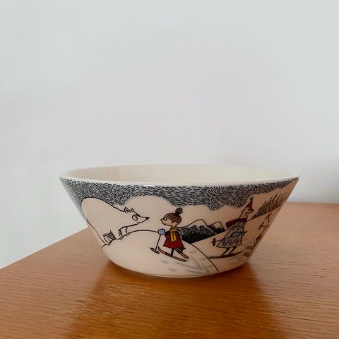 Myydään Arabian Muumikulho Hiihtäen kera herra Virkkunen (2014). Siistissä kunnossa. Tarra puuttuu.