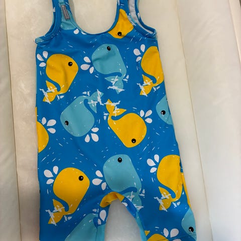 Finnwearin sininen lyhythihainen ja lyhytlahkeinen uimapuku koossa 80.