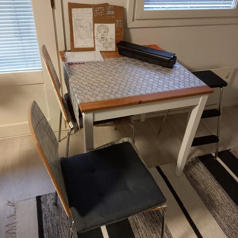 Omat kantajat, pöytä ei ole painava mutta on seitsemännessä kerroksessa eikä mahdu hissiin