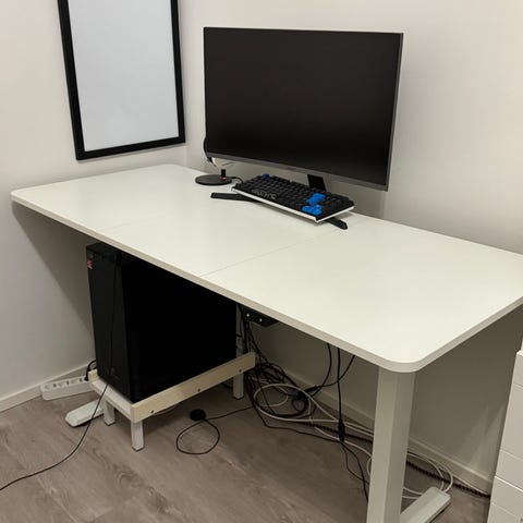 Kuin uusi laadukas valkoinen Lykke sähköpöytä, koko 120 x 60cm, korkeuden säätö 72-118 cm. Vain nouto Lahti.