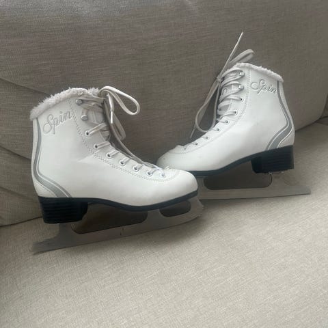 Princess taitoluistimet, koko 40. Väri valkoinen. Perinteinen nauhakiinnitys ja korkea varsi tukemassa nilkkaa. Terät kiinnitetty ruuveilla pohjaan. Soveltuvat yleiseen luisteluun ja harrastetason taitoluisteluun.