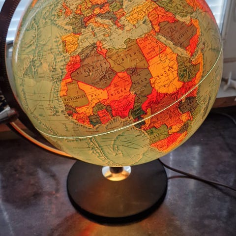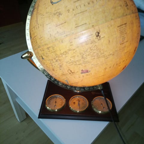 Ruotsinkielinen karttapallo. Pallon Halkaisija 26cm. Hyväkuntoinen valot toimii ja pallo muutenkin ehyt ei kolhuja tms.