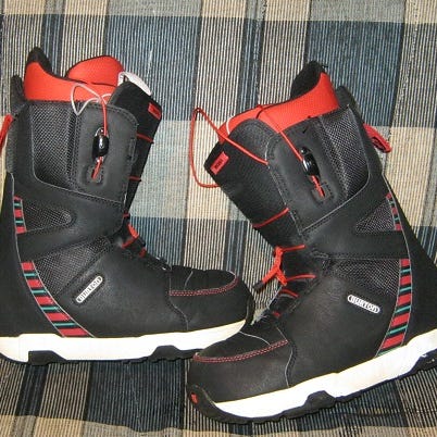 Laadukkaat Burtonin lumilautakengät (Burton on yksi arvostetuimpia lumilautailu kamppeiden valmistajia). Kokomerkintä on 37, kenkien sisämitta on 23.50 cm. Hyväkuntoiset siistit kengät, kaikki lenkit ja nauhat yms. kunnossa. Hinta 85 e