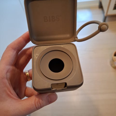 Bibsin tuttikotelo on kätevä tutin säilytykseen tien päällä. Mahtuu useimmat tutit, meillä ollut käytössä mamin tutit. Kuin uusi.