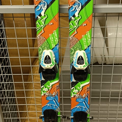 Firefly RKT twintip laskettelusukset integroiduilla siteillä. Suksissa värikäs graafinen kuviointi, jossa valkoisen, vihreän, sinisen ja mustan sävyjä. Pohjat mustat ja kantit metallia. Sopivat rinnelaskuun.