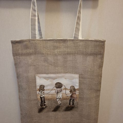 Kangaskassi tukevaa puuvillaa vuorella, koko 40 x 45 cm.