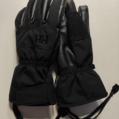 Helly Hansen lasketteluhanskat koossa S. Väri tummansininen mustilla vahvistetuilla kämmenosilla. Hanskoissa on pitkä varsi, kiristysnyöri ranteessa ja varressa sekä ranteeseen kiinnitettävät lenkit. Sopivat lasketteluun ja muuhun ulkoiluun kylmissä olosuhteissa. Jääneet täysin käyttämättä.