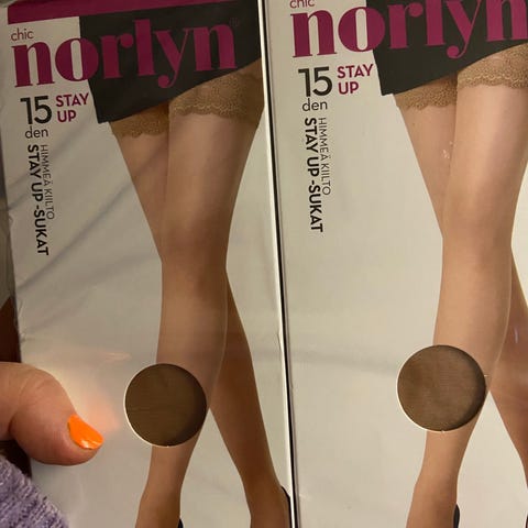 Mustat stay up sukkahousut pakkauksessaan. Pakkaus uusi, ostettu Lontoosta. M koko ja sopii pituudelta 163 - 173 cm pitkille. Postitus tai nouto.