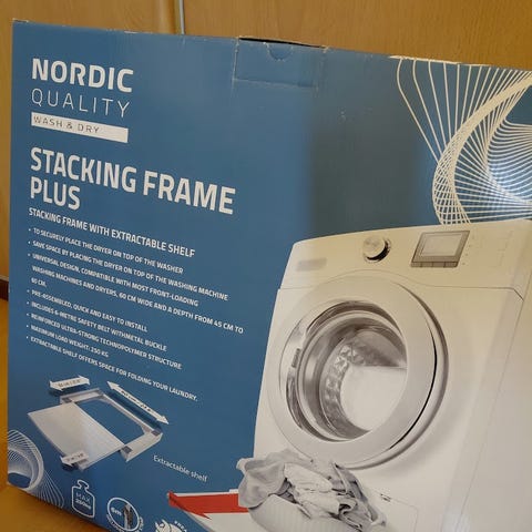 Näillä saat siis pesukoneen ja kuivausrummun kiinnitettyä toisiinsa kiinteäksi tontiksi.