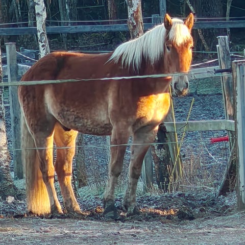 Patu on ollu mamman mussukkana ja saanut kasvaa rauhassa, tulee ihan ok hevosen kokoinen (ei siis piekkari) mutta ei mikään jättiläinen (paitsi päästä). Patun isä oli hieno työhevonen Pikku-Laakeri, ja Patussa on mielestäni samaa kuin isässään muutenkin kuin ulkonäöllisesti.