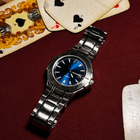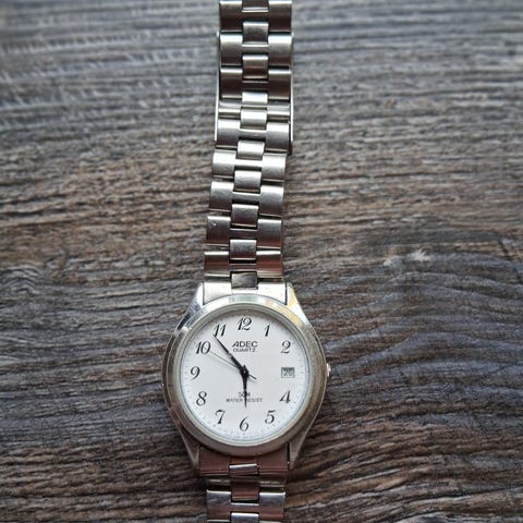 Kvartsikello täydellisessä kunnossa, löytyi vaatekaapista, akku lopussa? sopii myös suuriin ranteisiin, ranneke leveys: 18mm, kellon leveys ilman kruunua 33mm kruunun kanssa 36mm. heijastamaton kristalli. vedenkestävyys jopa 5 atm. japanilainen mekanismi. Kellossa ei ole näkyviä jälkiä, ranteessa lasissa tai kotelossa saattaa havaita käytön jälkiä, katso kuvat! kello painaa 100g. kokonaan ruostumatonta terästä. Se toimitetaan jatkopalan ja sen laatikon kanssa