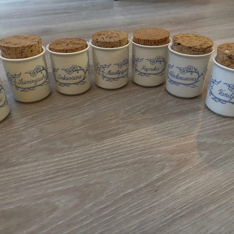 5 kpl Maustepurkkeja kannella, korkeus n. 12cm.
