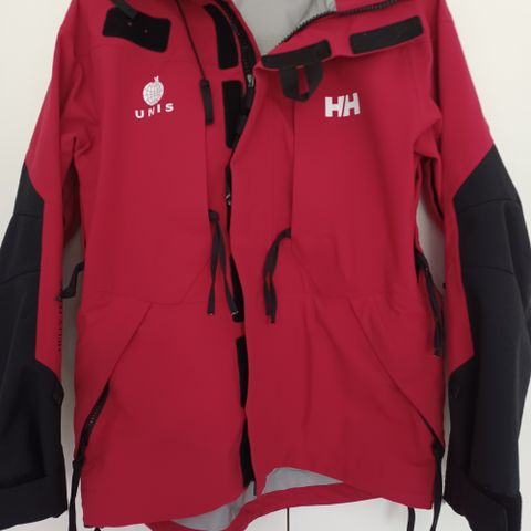 Helly Hansen tummansininen takki. Edessä vetoketju ja kaksi vetoketjullista taskua. Hihassa ja selässä HH-logo. Sopii arki- ja ulkoilukäyttöön. koko/L/G