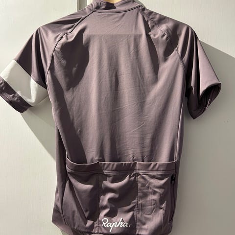 Rapha pyöräilypaita koossa XX-Large. Lyhythihainen malli, tummansininen väri ja täyspitkä vetoketju edessä. Takana useita taskuja pikkutavaroiden kuljettamiseen. Valmistettu kevyestä ja hengittävästä teknisestä materiaalista, joka sopii maantiepyöräilyyn ja muuhun pyöräilyyn lämpimissä olosuhteissa.
