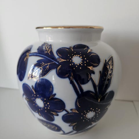 Purkki / rasia on käsinmaalattu, ja siinä on 22 karaatin kultakoristeita.