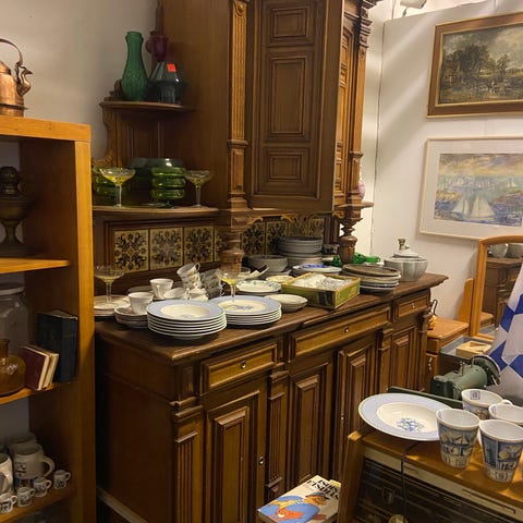 Yläosa on irrotettava, joten alakaappia voi käyttää myös sellaisenaan. Kaappia on osittain kunnostettu mm uusimalla puuosia sekä maalaamalla( ulkoa valk maali, yläkaappi sisältä valkoinen, alakaappi sisältä kylmä vaal sininen. Vetolaatikot puupinnalla sisäpuolelta). Peräisin ilmeisesti Baltian alueelta ja sijoittuu iältään tuonne 1900- luvun alkuun käsittääkseni. Upea yksilö!