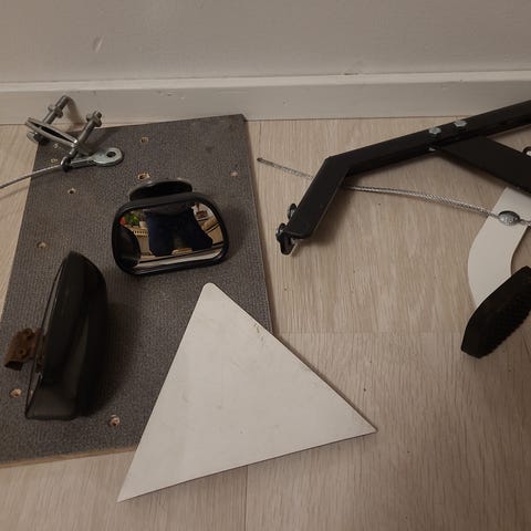 Opetuspoljin ja taustalevy. Ollut asennettuna vw passat b7 autossa. Mukaan magneettikolmio ja sisäpeili.