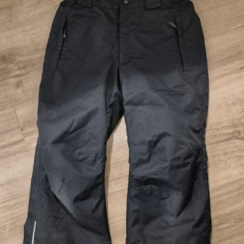 Reima lasten toppshousut, koko 140. Väri musta. Topakka-malli eli D-mitoitus. Lahkeiden suut vähän kuluneet ja vasemmassa polvessa ihan vähän kulumaan. Todella siistit