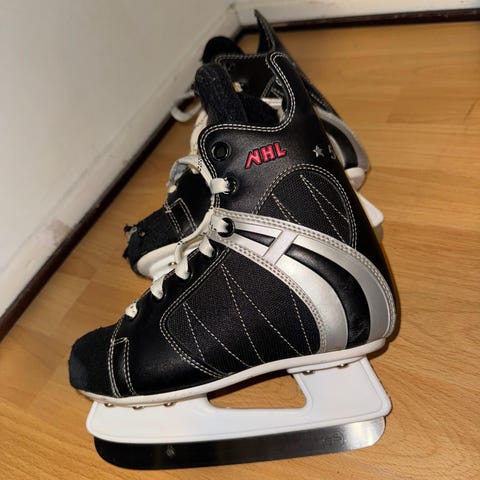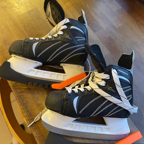 Toronto lasten jääkiekkoluistimet. Säädettävä kokoalue 32–35. Väri musta valkoisilla ja punaisilla yksityiskohdilla.. Terät soveltuvat jääkiekkokäyttöön ja yleiseen luisteluun lapsille.