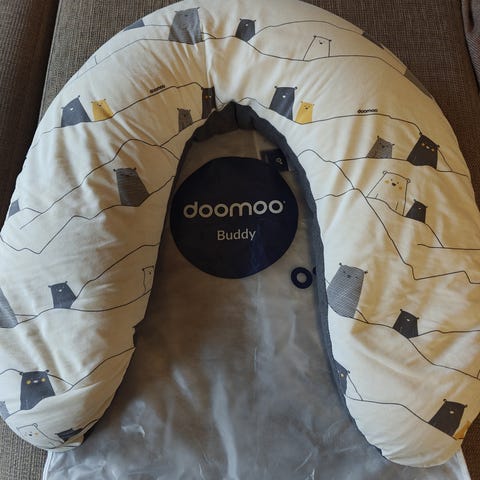 Doomoo Buddy imetystyyny vaaleanharmaa. Päällikangas irroitettavissa ja pestävissä. Ostettu uutena ja ollut käytössä yhden lapsen imetykseen. Säilytetty aina lämpimissä sisätiloissa.