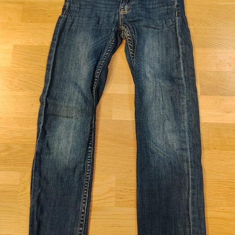 Polarn O. Pyret farkut lapsille, koko 128. Siniset denim-housut, unisex-malli. Housuissa etu- ja takataskut sekä polvissa leikkaussaumat, jotka antavat tilaa liikkua. Materiaali denim. Soveltuvat arkeen ja ulkoiluun vuodenajasta riippuen muiden vaatekerrosten kanssa.