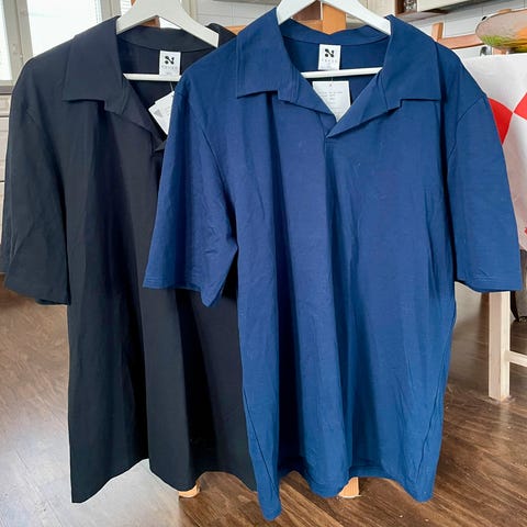Myydään Nanson uusi miesten T-paita / pikeepaita. Koko XXL, menee mielestäni myös XL. Mitat noin: kai-kai 58cm, olka-helma 73cm, joustaa.