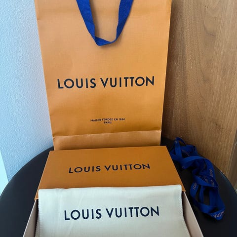 Aito moitteettomassa kunnossa oleva Louis Vuitton laatikko 35,5cm×26,5cmx13cm ja kassi johon mahtuu itse laatikko