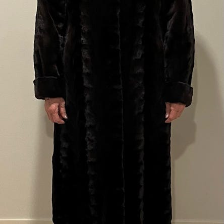Leikattua minkkiä, hupun reunus sinikettua. Koko 40-42