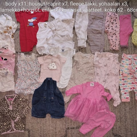 Myydään iso tyttöjen vaatepaketti. Koot 62/68 muutama 74 kaupan päälle.