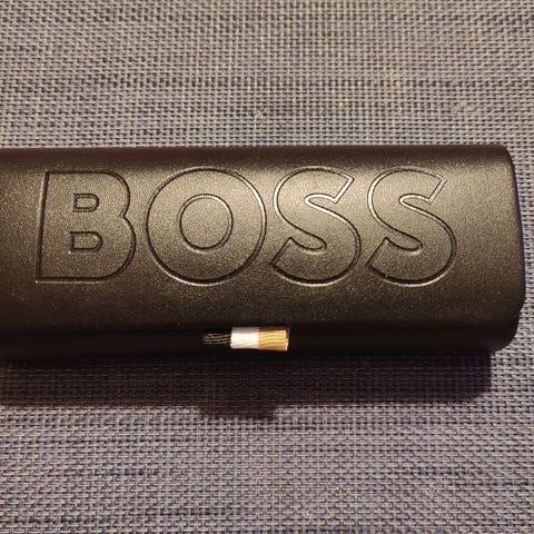 Boss silmälasikehykset tumman harmaata, puujäljitelmäkuvioista muovia. Suorakulmainen malli, jossa täyssankaiset kehykset. Mukana Boss-kotelo. Sopivat optikolla vaihdettaville linsseille. Linsseinä nyt omat hajataittoiset peruslinssit vähäisillä vahvuuksilla, tuskin sinulle hyötyä niistä.