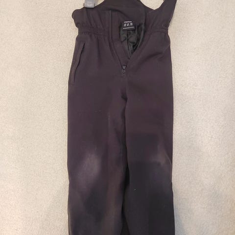 Mustat toppahousut 122cm. Oletan, että malli on Loikka, joka on yksi kestävimmistä Reiman toppahousuista. Loistava vedenpitävyys. Meille tulleet käytettyinä, mutta eivät ehtineet meillä käyttöön. Henkselit puuttuvat, eivät ole tulleet mukana meillekään. Polvissa pehmentymää ja karheumaa, mutta ehjät. Lahkeissa lumilukot ja lahkeensuut säädettävissä.