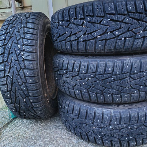 Hyväkuntoiset peltivanteet nastarenkailla.