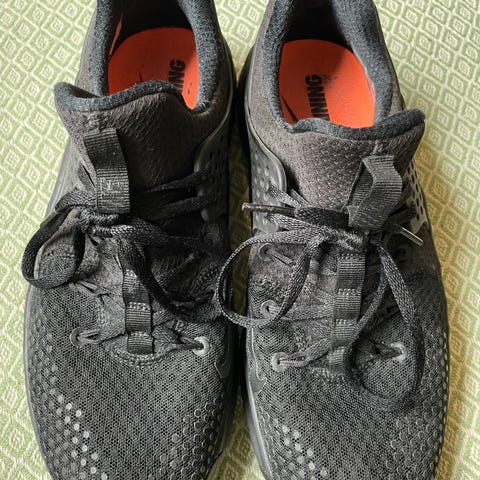 Nike Air Max juoksukengät, koko 43. Väri pääosin harmaa, vaaleanpunaisilla yksityiskohdilla ja mustalla logolla. Päällinen on hengittävää verkkokangasta ja kengissä on nauhakiinnitys. Pohjassa on läpinäkyvä Air Max -vaimennus, joka sopii salitreeniin ja muuhun kevyempään liikuntaan. Kenkien malli on suunniteltu tarjoamaan tukea ja mukavuutta sisäliikunnassa ja arjen käytössä.