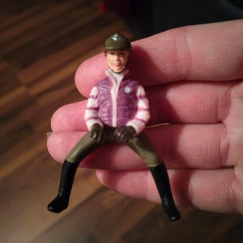 Myydään kuvan mukaisessa kunnossa oleva setti, jossa Schleichtalli Rambostakin tuttu poniratsastaja Vilma, shetlanninponi Lilli sekä Vilmalle kuuluvat ponisuitset ja ponisatula.