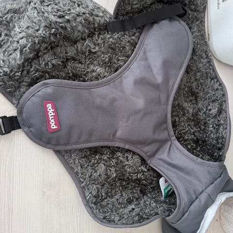 Valjaille aukko. Lämmin karva sisäpuolella. Säädettävä kiinnitys selkäpuolelle.
