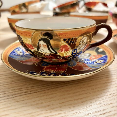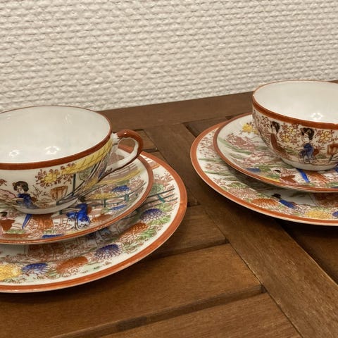 Tämä on vintage japanilainen Kutani-posliinilautanen ja teekuppi.